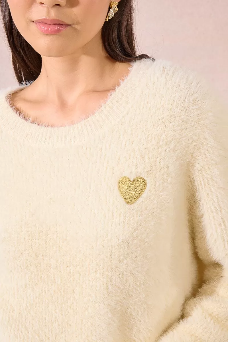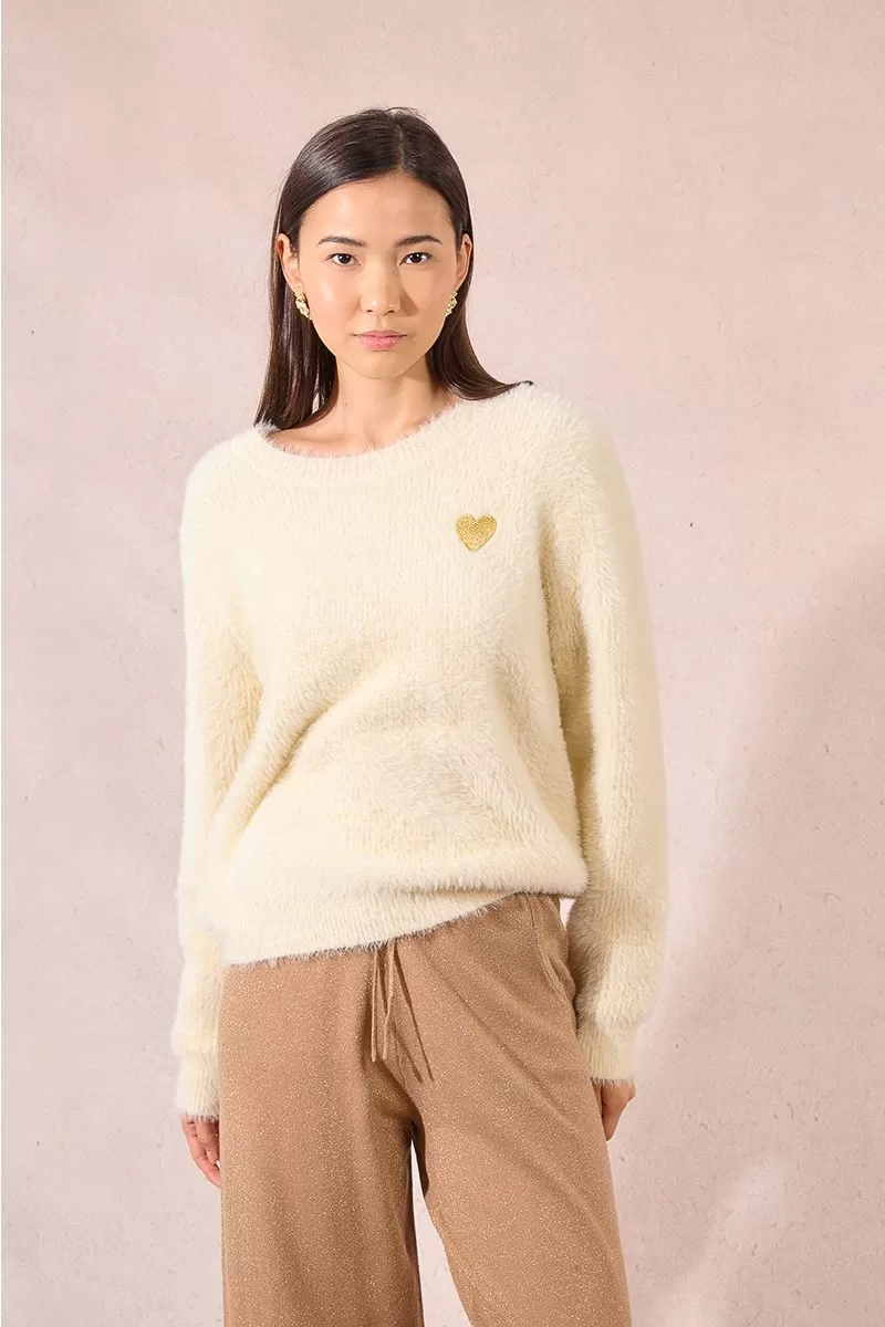 Χνουδωτό πουλόβερ, κεντημένη καρδιά LA1846DN Molly Bracken