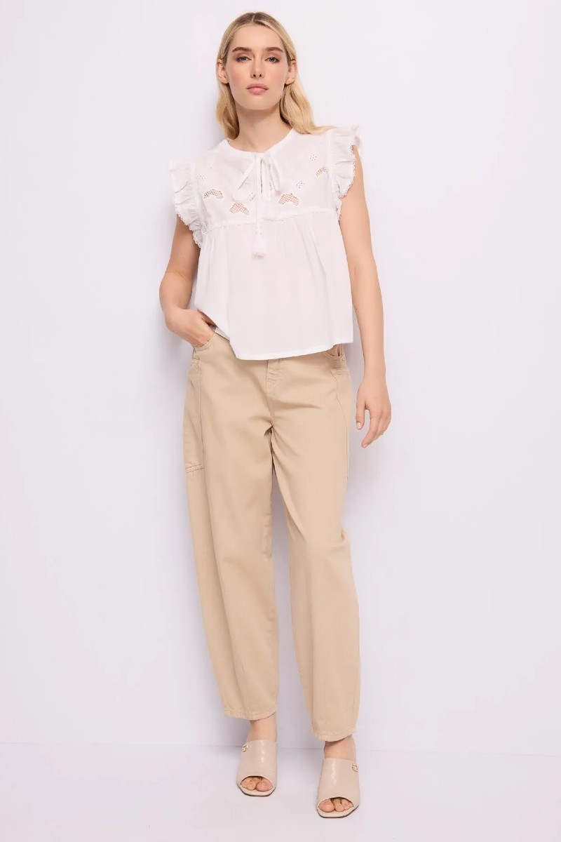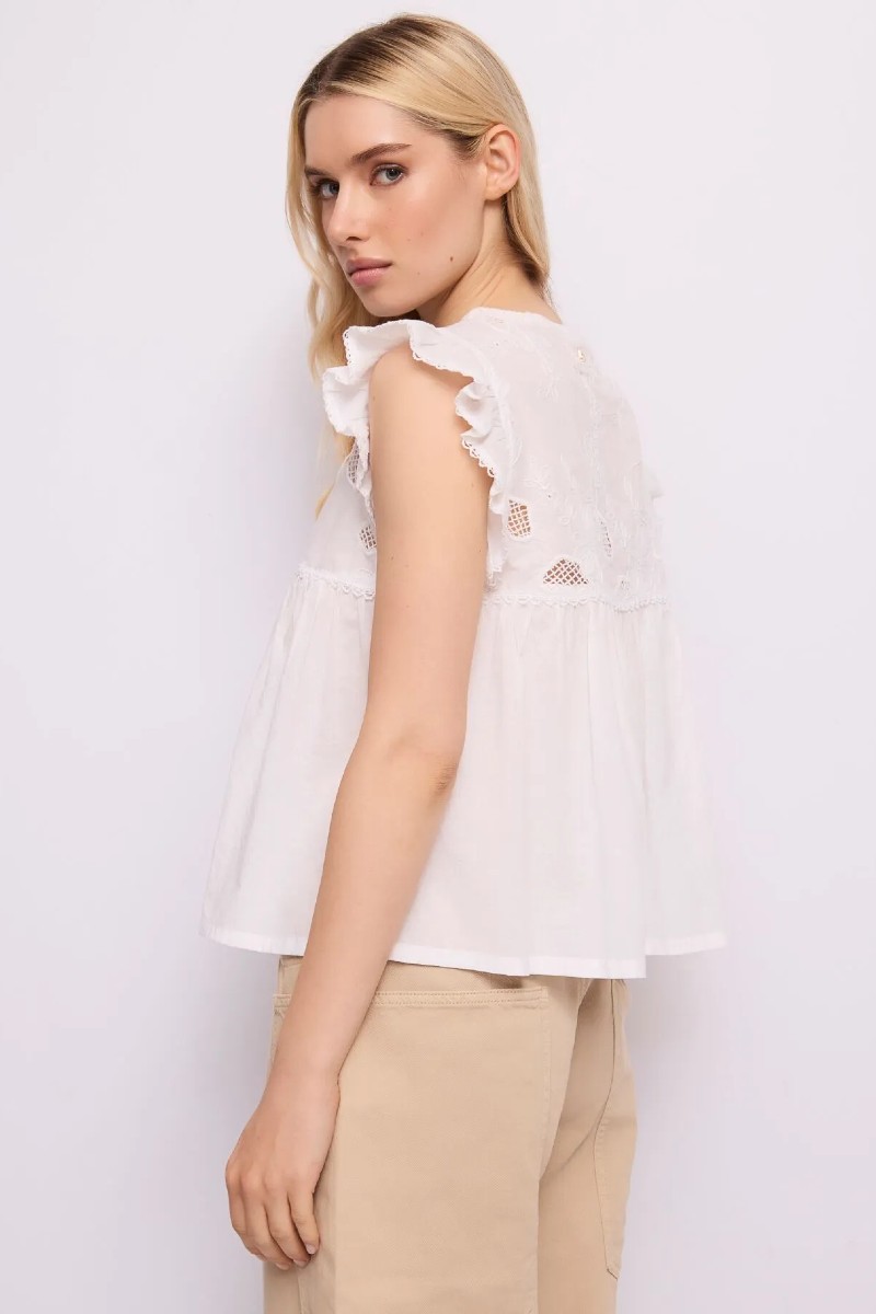 Γυναικείο λευκό τοπ από βαμβακερή μουσελίνα GAUDI 262_611BD45026_2100