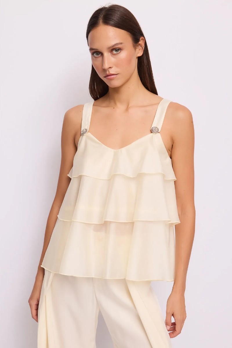Επιλέξτε αυτό το τοπ με βολάν από μουσελίνα,