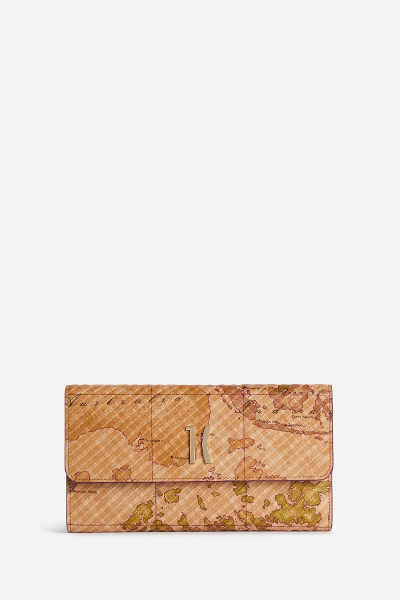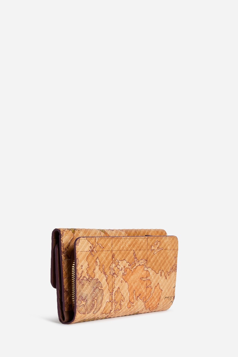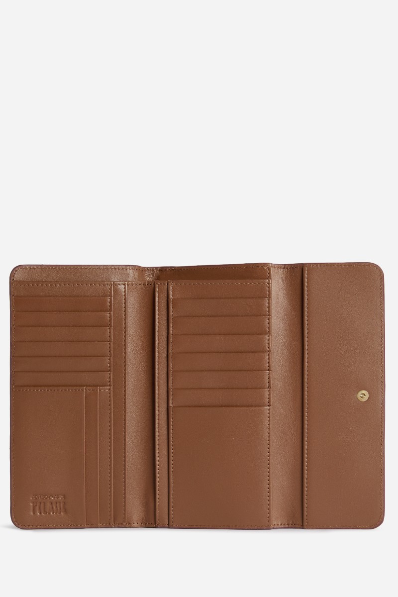 Μεγάλο δίπτυχο πορτοφόλι από δέρμα ναπά με εφέ καρό