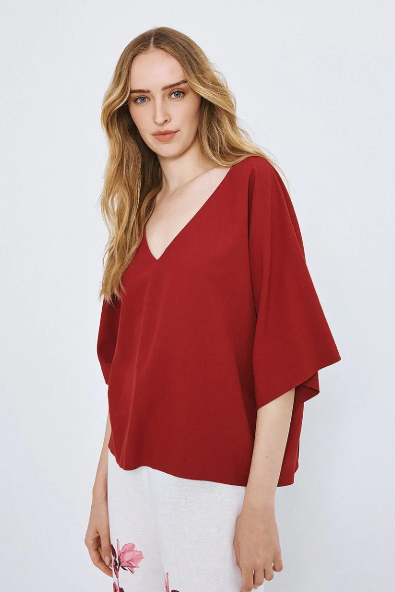 V λαιμόκοψη και διακριτικές λεπτομέρειες με πιέτες στο πίσω μέρος.