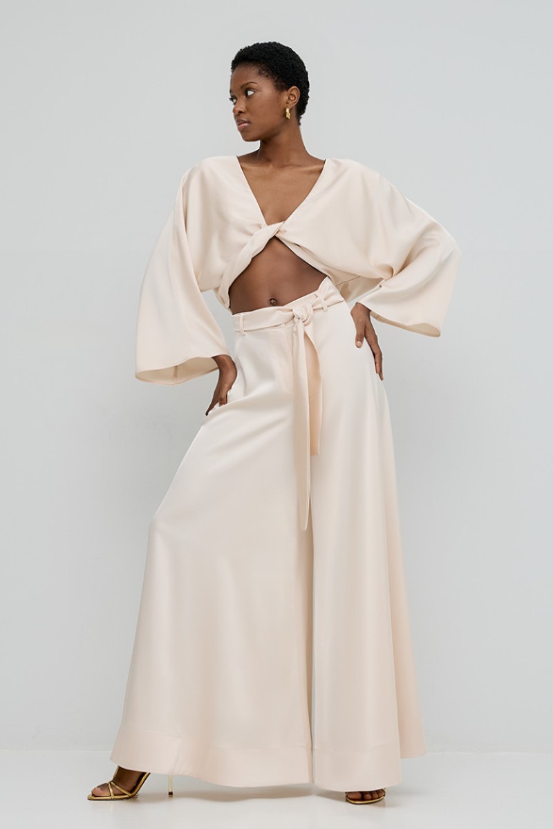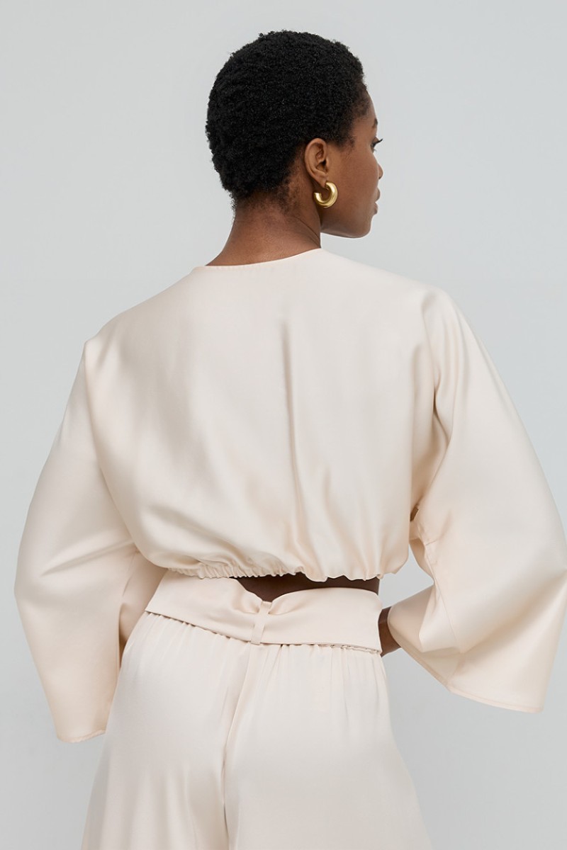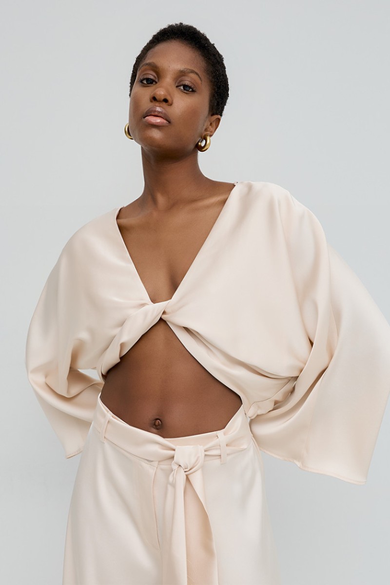 Σατέν, κοντή μπλούζα με λεπτομέρεια κόμπο μπροστά.