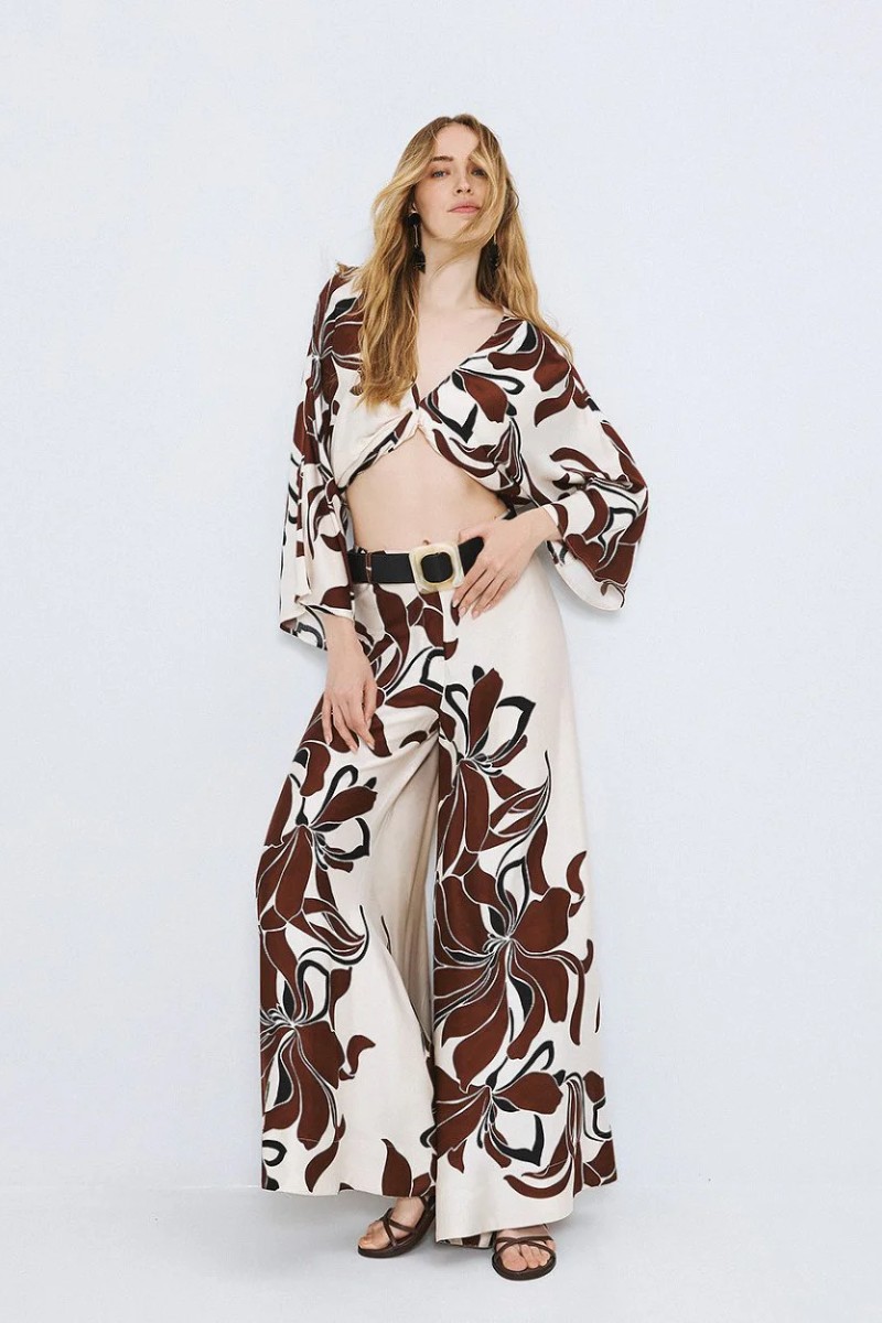 Εμπριμέ παντελόνα extra wide-leg με θηλύκια.