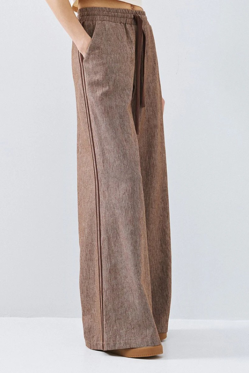 Φαρδιά παντελόνα με ελαστική μέση και κορδόνια.