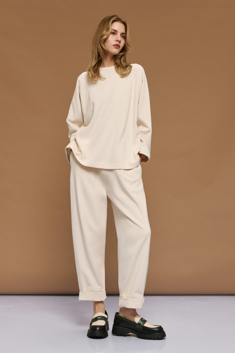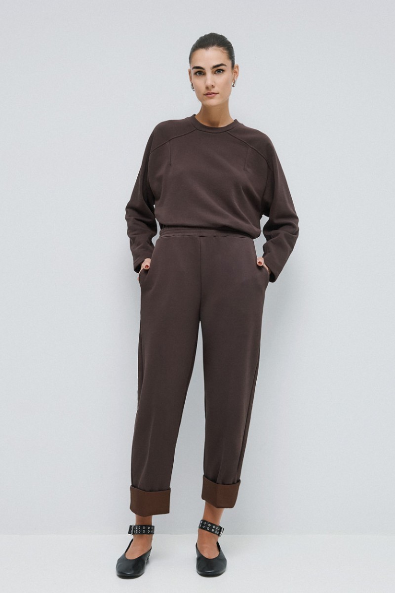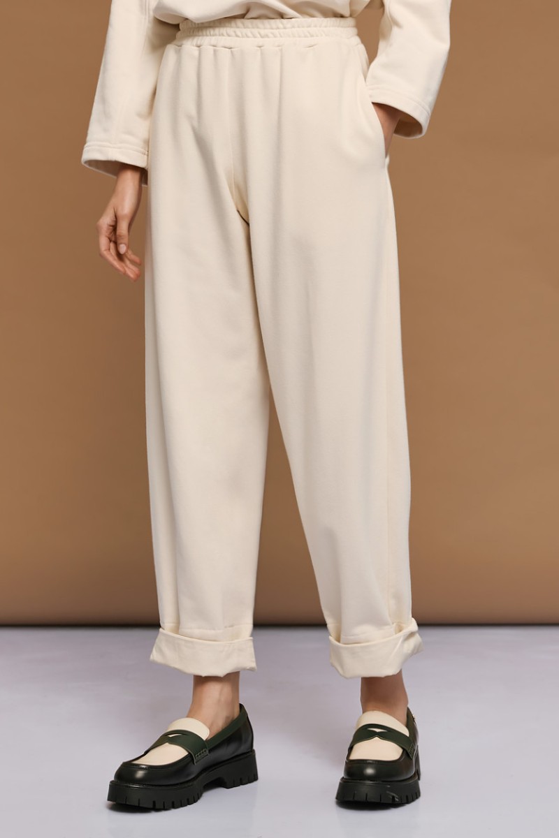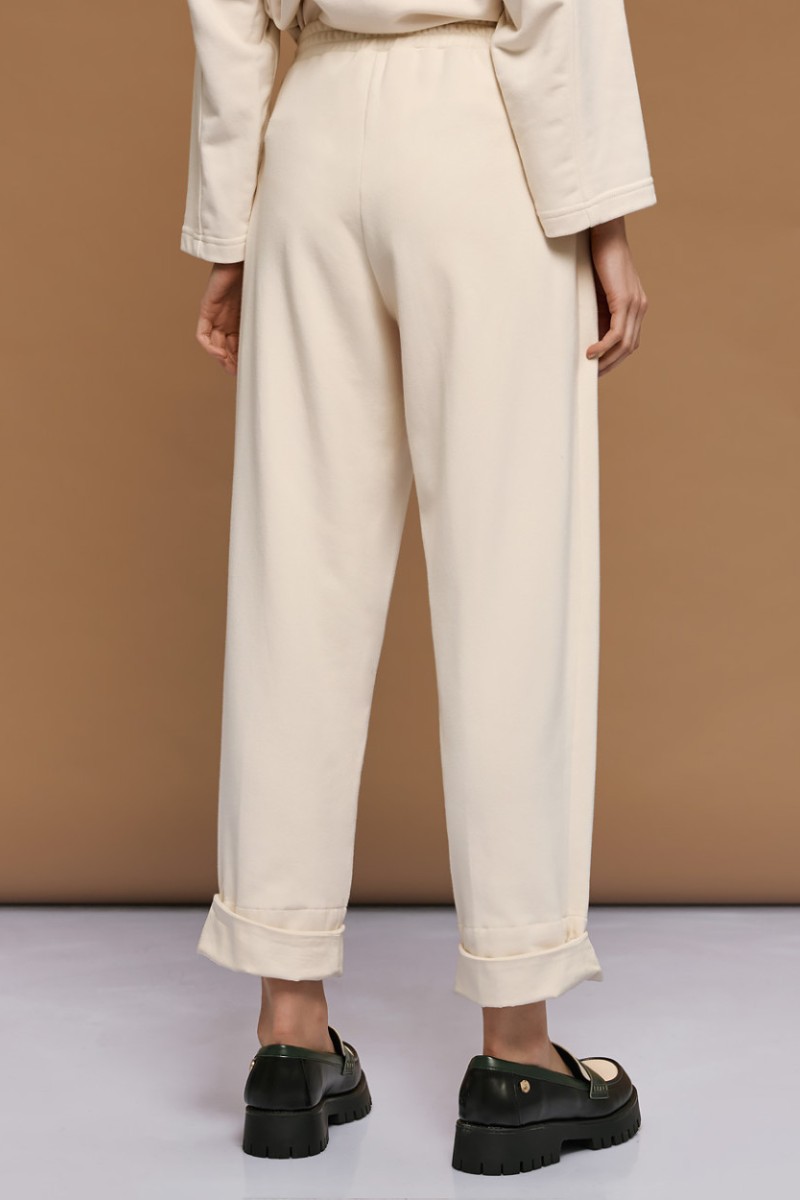 Ψηλόμεσο παντελόνι με ελαστική μέση και ρεβέρ, σχεδιασμένο με πλαϊνές τσέπες.