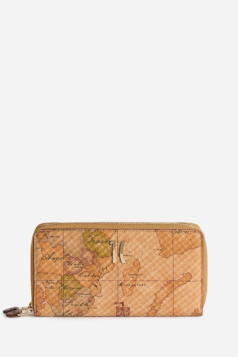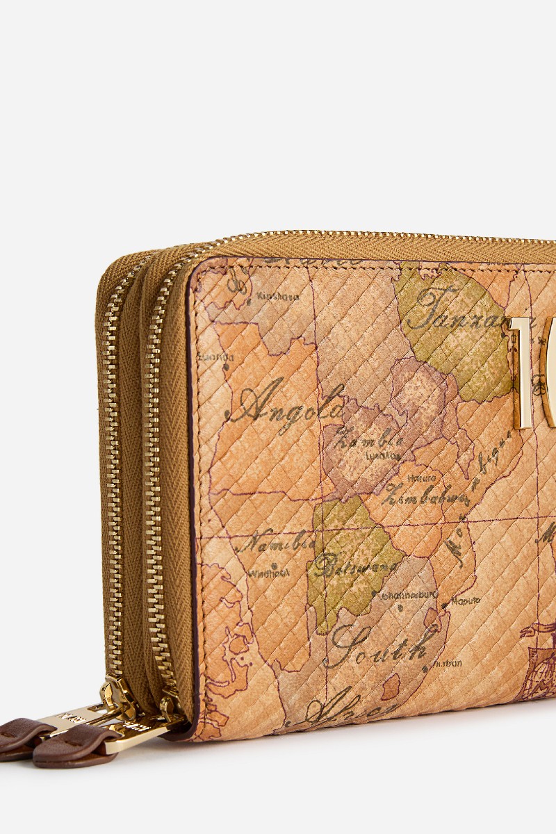 Πορτοφόλι από δέρμα Napa με διπλό φερμουάρ και εφέ Tartan