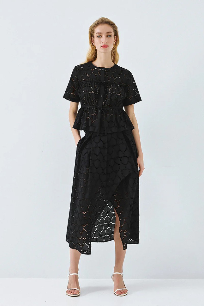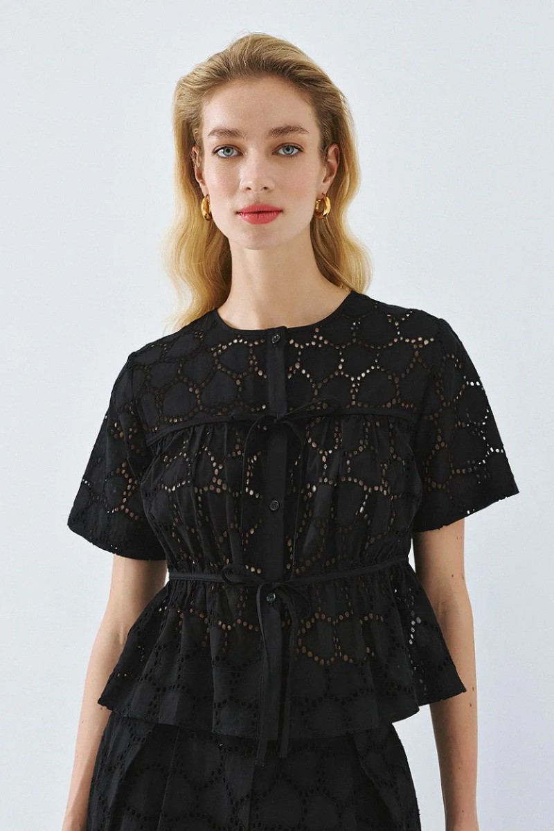 Κοντομάνικο broderie τοπ με στρογγυλή