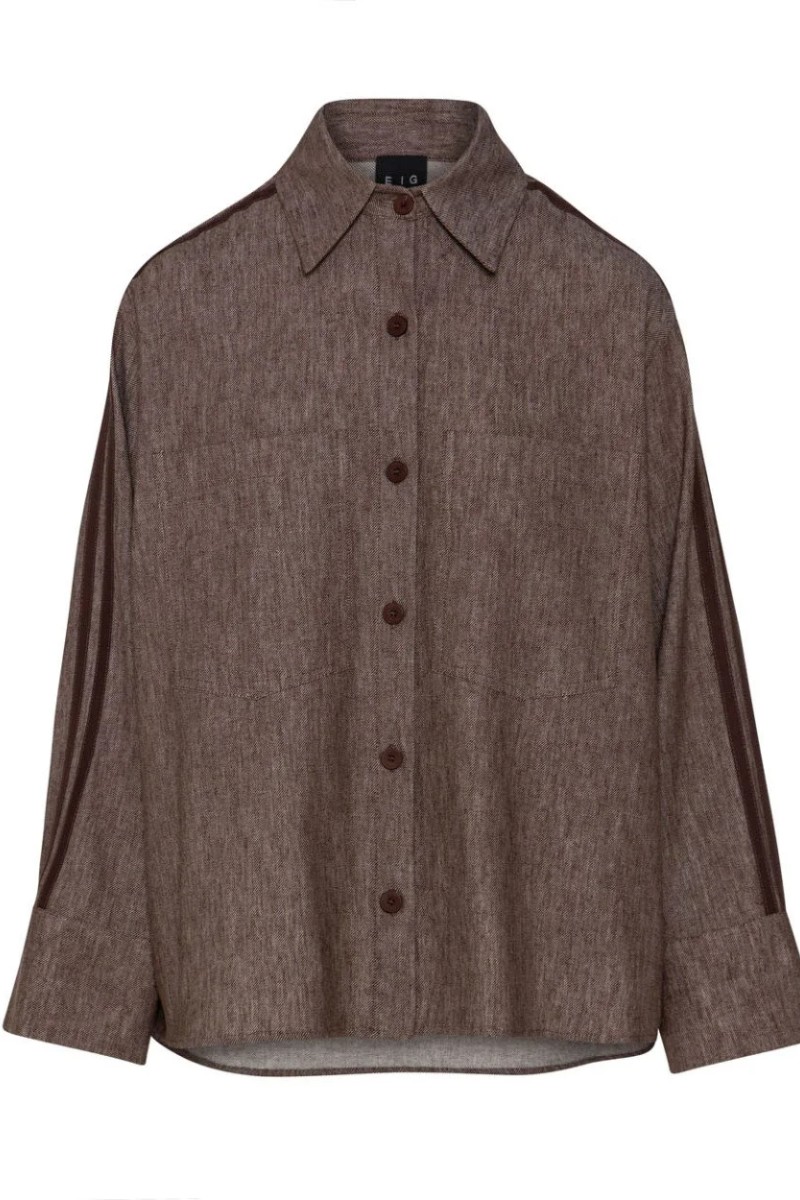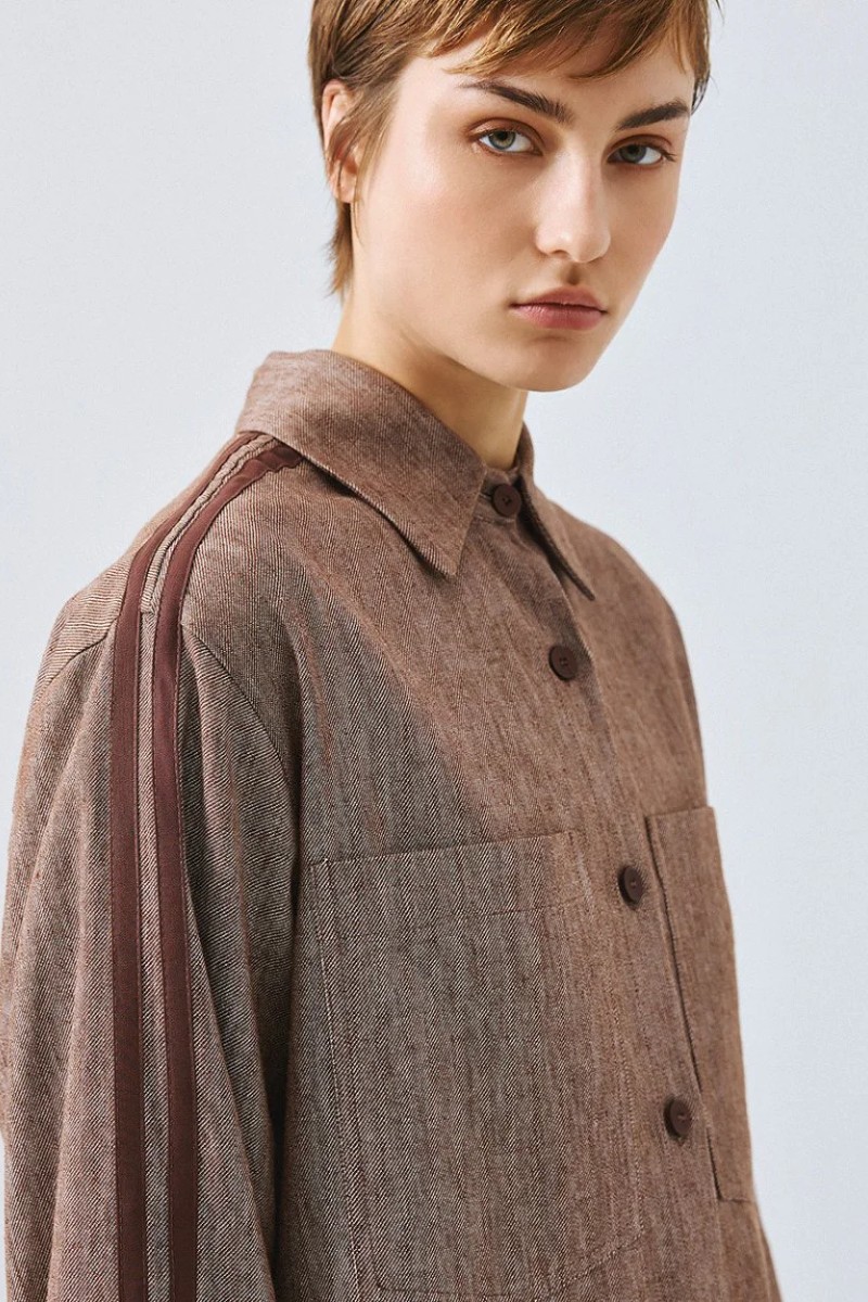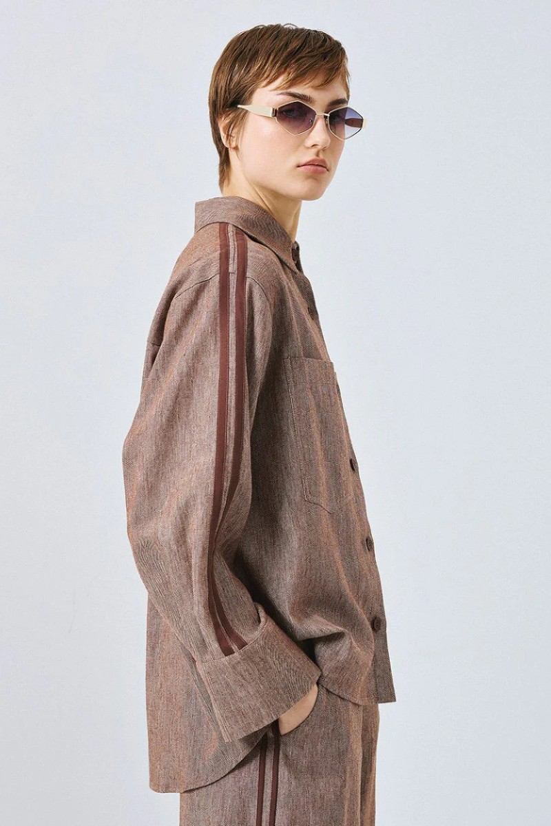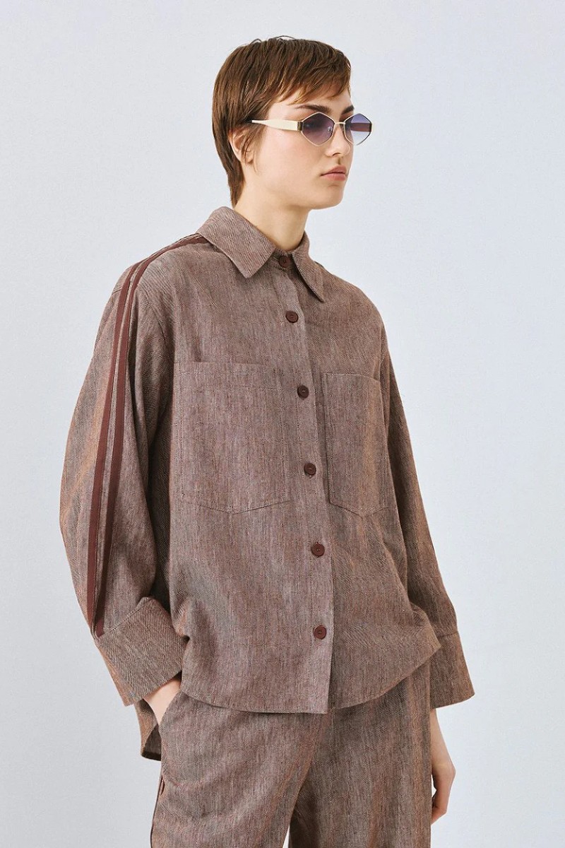 Πουκάμισο με μακριά μανίκια, γιακά και ριγέ φάσες στα πλαϊνά.