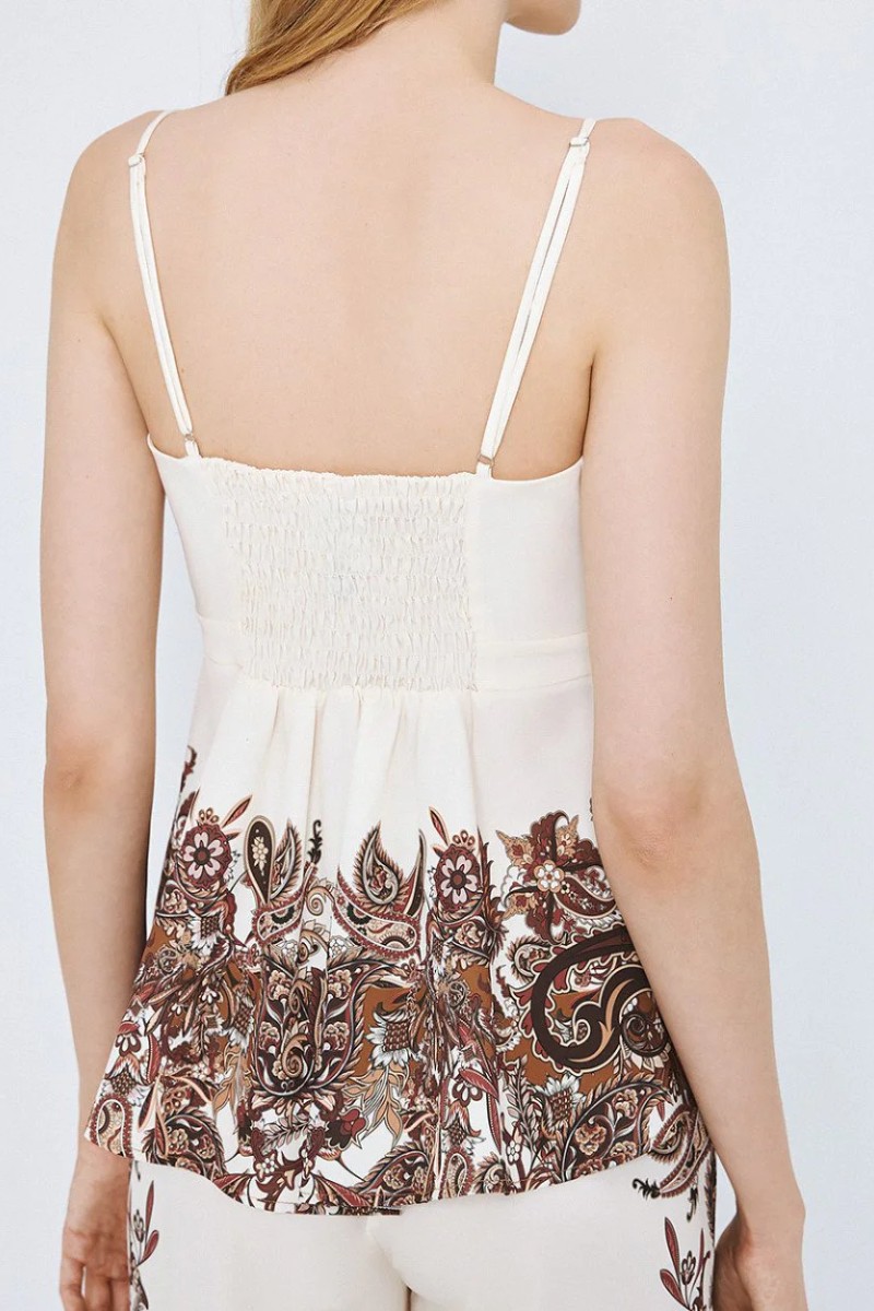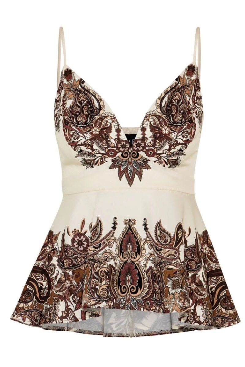 Εμπριμέ peplum τοπ με λαιμόκοψη καρδιά.
