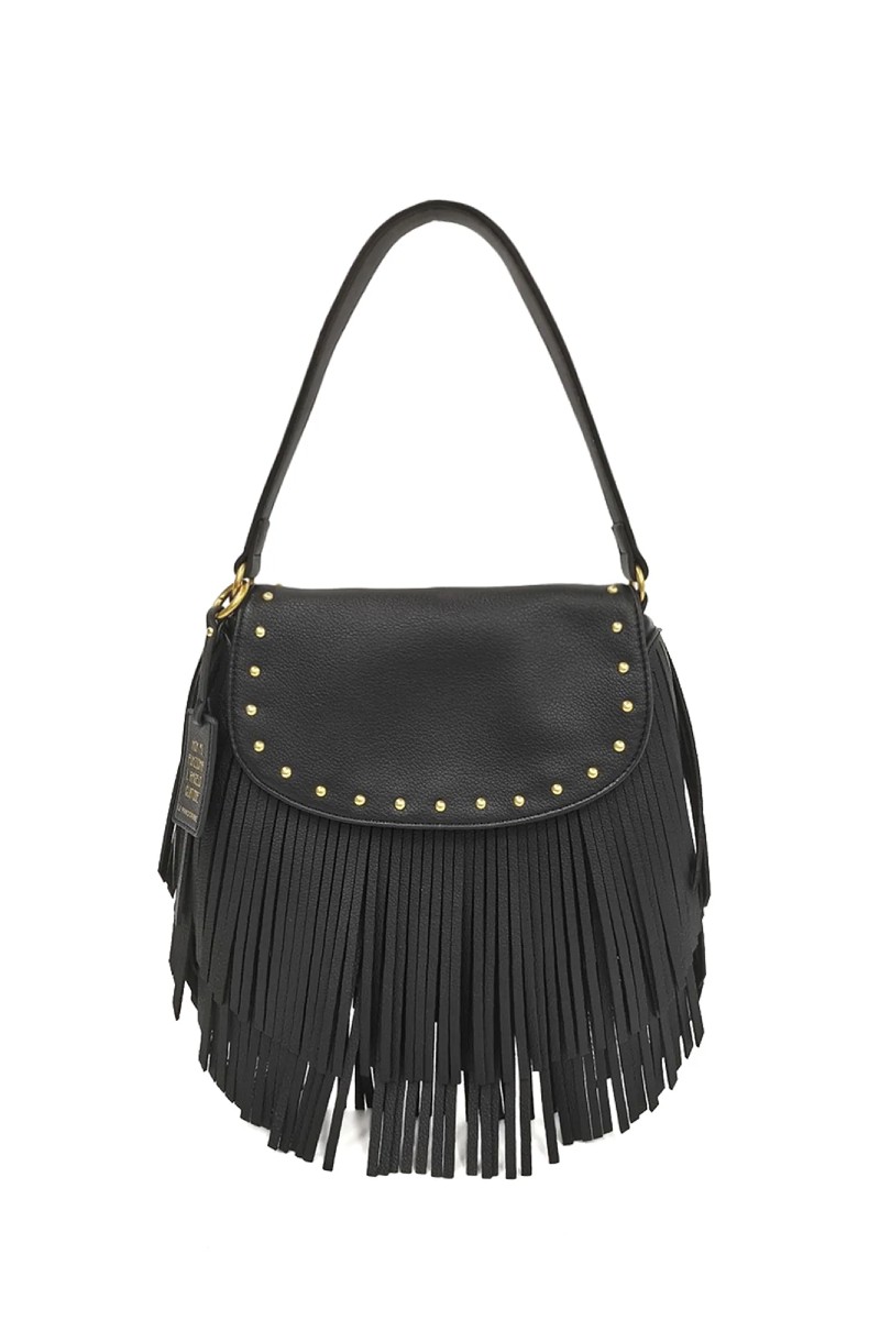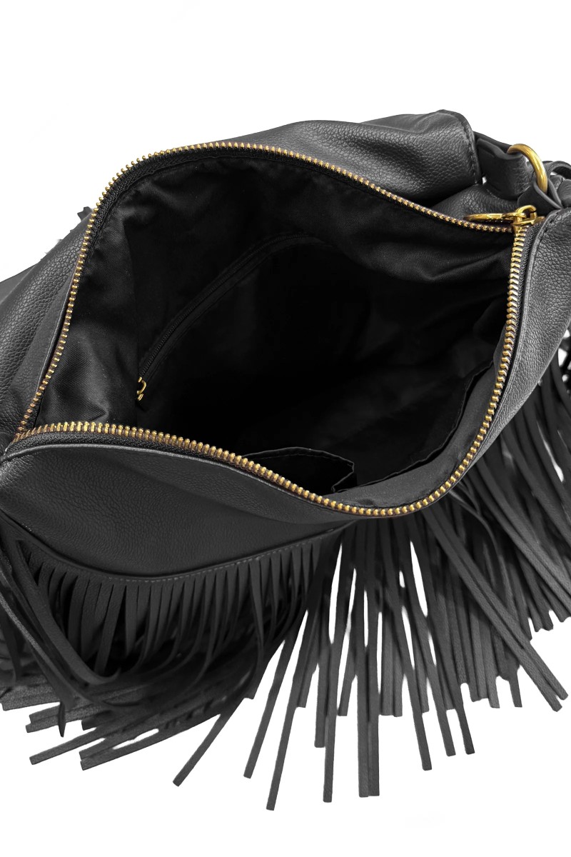 Τσάντα φαρδιά με καπάκι και κρόσσια
