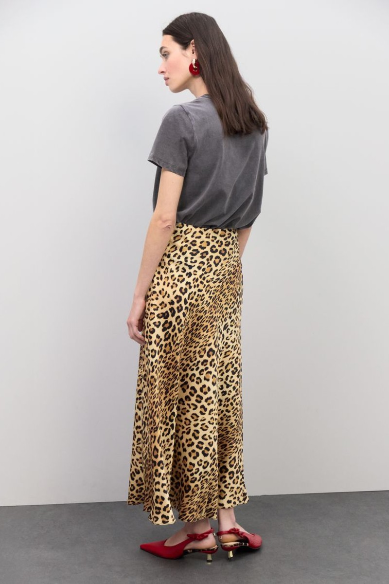 Μίντι φούστα από σατέν ύφασμα με ελκυστικό animal print.