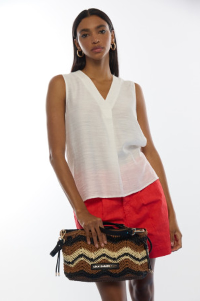 Lola Casademunt Δίχρωμο Chevron Effect Raffia Χιαστί Πέδιλο Crossbody LS2604097_2N5