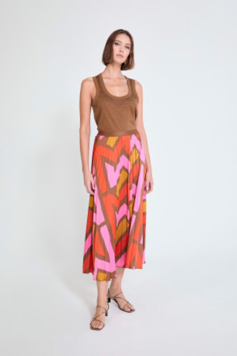Μίντι πλισέ φούστα με ζωηρό γεωμετρικό τύπωμα.