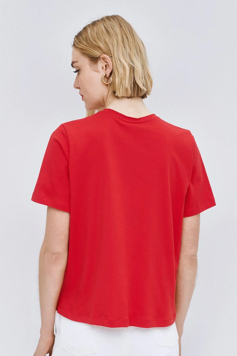 Βαμβακερό κοντομάνικο T-shirt με στρογγυλή λαιμόκοψη,